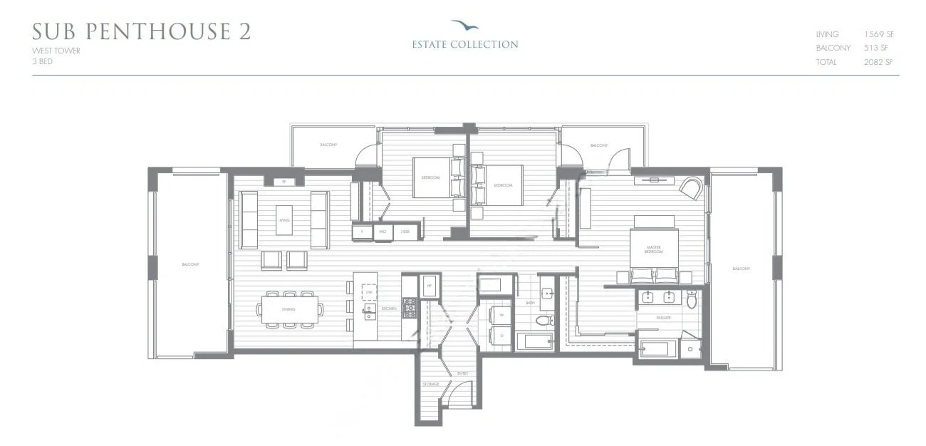 Sub-Penthouse with over 500 sq ft of covered outdoor living across four private decks