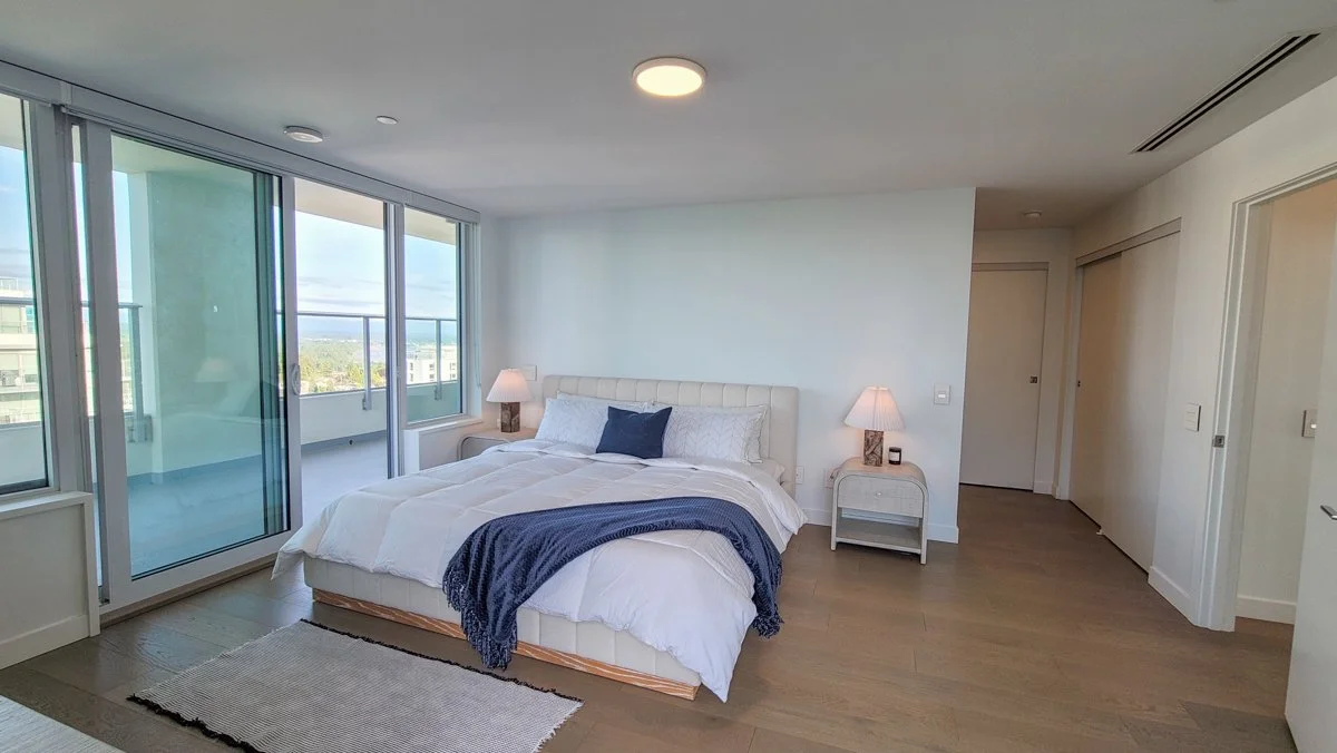 Sub-Penthouse at Miramar Village | Ocean Views + 4 Decks. Stunning home with breathtaking ocean & mountain views from 500+ sq ft of covered outdoor space across four separate decks—perfect for entertaining or enjoying sunsets year-round. Open-concept layout flooded with natural light features Italian cabinetry, Bosch appliances, composite quartz counters, & Hansgrohe fixtures. Spa-like bathrooms with Nuheat heated stone floors & floating vanities create a true spa experience. Includes A/C & Nest thermostats. Miramar Village is more than just a home—it's a lifestyle. Residents enjoy exclusive access to a 15,000 sq ft rooftop amenity deck featuring an outdoor ocean view pool, incredible gym, BBQ area, & putting green, plus 50,000 sq ft retail village below.